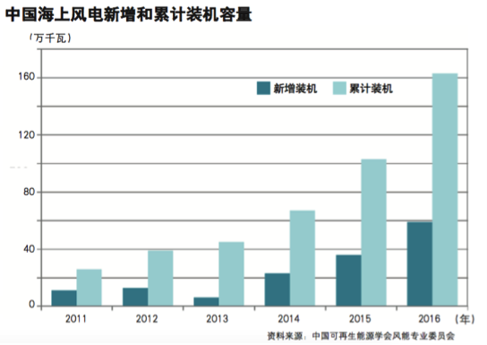 如今,我國業界甚至已經開始進軍海上風電的發源地—歐洲。2016年7月,中廣核歐洲能源公司與法國合作方公司組成的聯合體成功中標法國首批漂浮海上風電先導項目格魯瓦(Le Groix)項目,該項目將由4臺單機容量6兆瓦的漂浮式海上風力機組成。2017年9月,中國長江三峽集團和葡萄牙電力公司成功中標英國莫里(Moray)海上風電項目,該項目裝機容量為95萬千瓦。