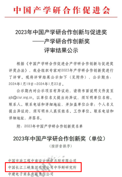 本網訊(胡雪辰 葉孜)近日,中國產學研合作促進會公示2023年中國產學研合作創新與促進獎評審結果,其中三峽集團生態工程中心長江生物多樣性研究中心中華鱘研究所(以下簡稱中華鱘研究所)榮獲“產學研合作創新獎”,長江生物多樣性研究中心主任專業師黃桂云榮獲“產學研工匠精神獎”。
