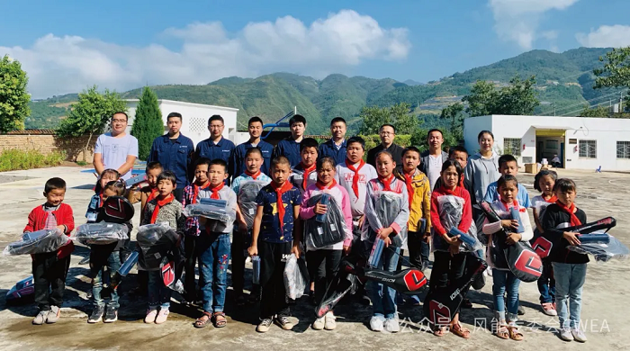 金陽索瑪花開,巨大的風電機組屹立于山頭,將原本貧瘠的荒山變成了助力鄉村振興的“金山銀山”。“大風車”每年可“吹出”約4。19億千瓦時的清潔能源,每年可為當地政府增加2000多萬元的稅收,建設期創造出500多個就業崗位。六一兒童節期間,金陽風電場的現場運維團隊為偏遠學校的學生們發放教學物資和生活用品,青年志愿者們向小朋友們介紹風電機組模型,小朋友們被“大風車”吹出的清潔能源深深吸引,“小腦袋們”圍著志愿者老師嘰嘰喳喳好奇地詢問風力發電的種種細節。